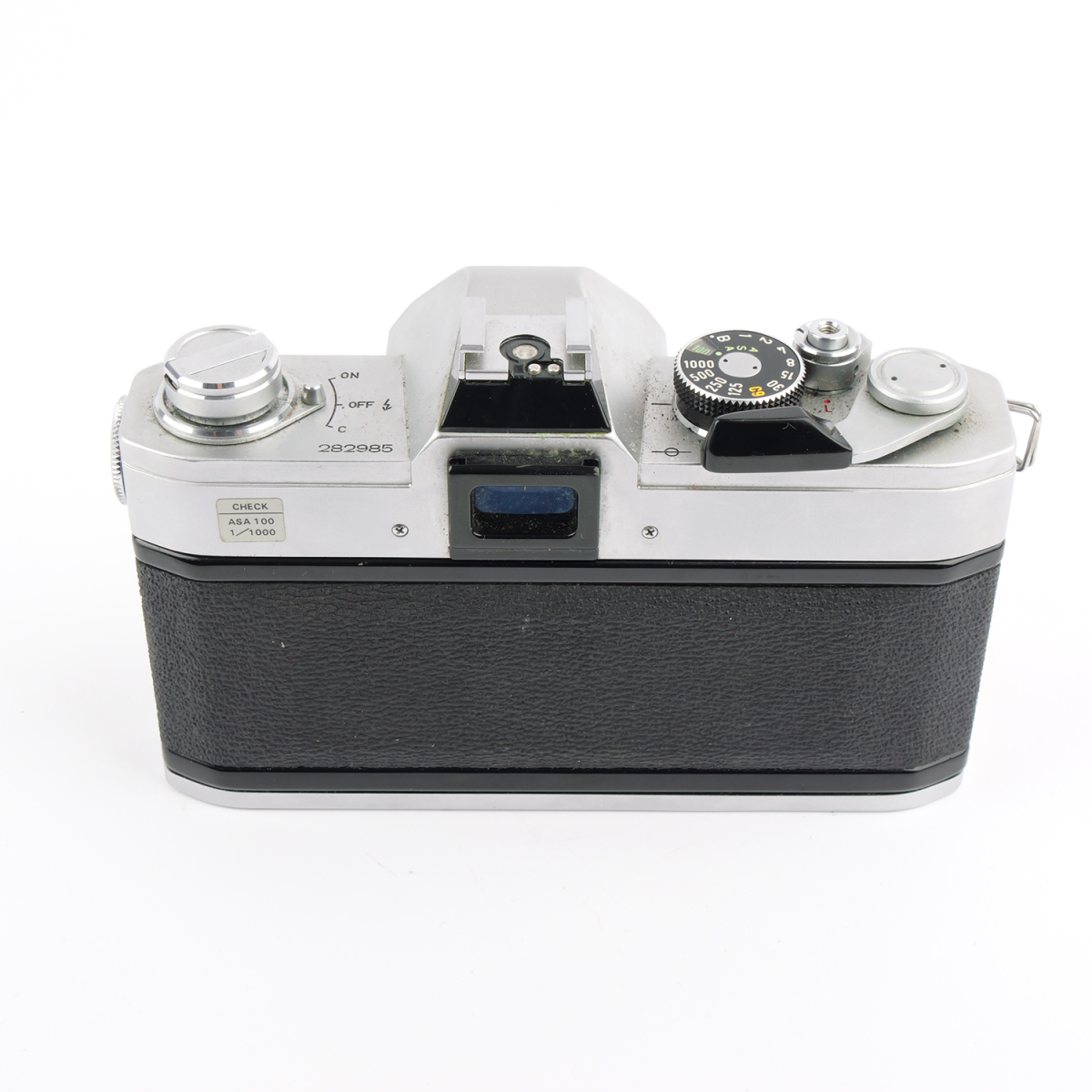 Eine klassische Canon-SLR der 1970er Jahre, geeignet für Sammler oder als Basis für eine mögliche Aufarbeitung.