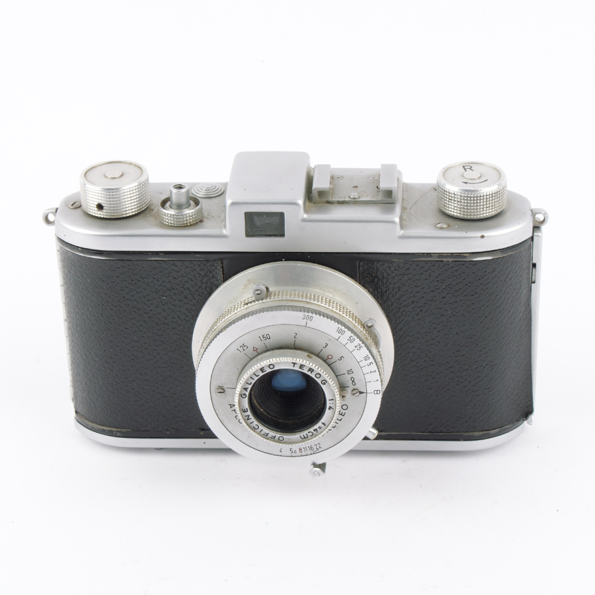 The Condor Condoretta is a compact post-war rangefinder camera and represents a typical example of European camera production from the 1950s. It was designed as a simple, handy camera for everyday use and is equipped with the Terog 4/40mm lens. This example is in age-appropriate condition with noticeable signs of wear.