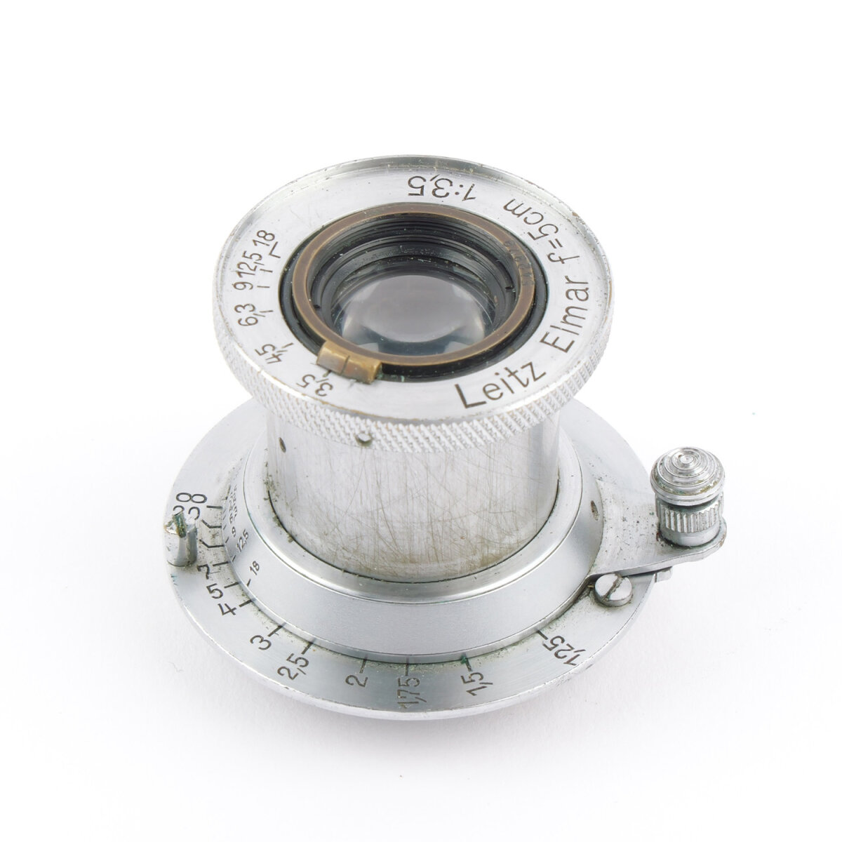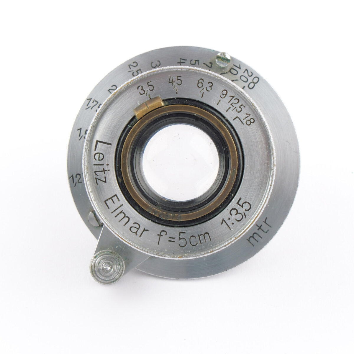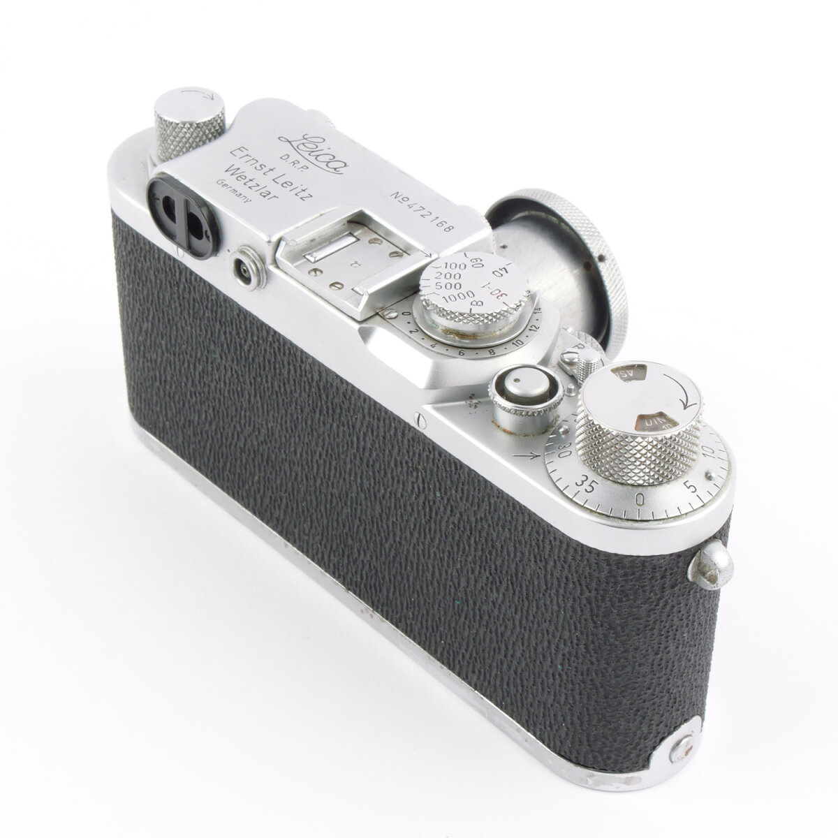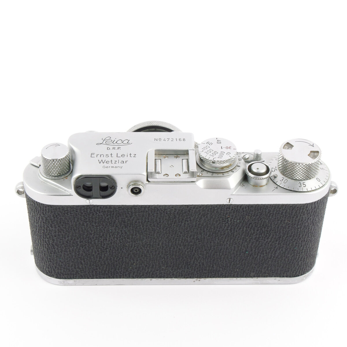 Besondere Leica IIIc in sogenannter „Sharkskin“-Ausführung mit IIIF-ähnlichem Umbau und Selbstauslöser, kombiniert mit dem klassischen Elmar 5cm f/3.5 Objektiv. Eine seltene und interessante Konfiguration innerhalb der Leica Schraubmodelle.