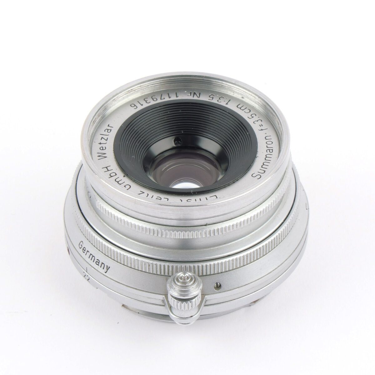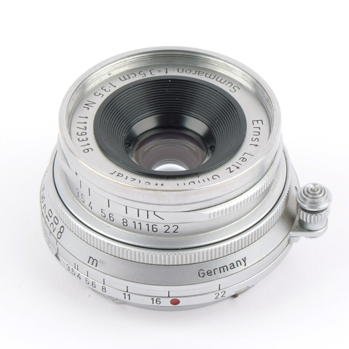 A particularly nice early Summaron-M 35mm f/3.5 from 1954 with very well-preserved optics. An attractive piece for collectors of classic Leica M lenses as well as for photographers seeking a compact historic wide-angle lens.
