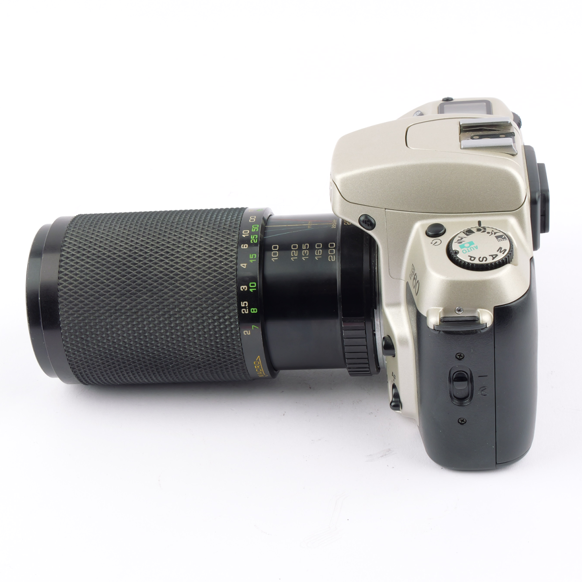 Die Nikon F60 ist eine analoge Spiegelreflexkamera aus der späten Nikon-Film-Ära, bekannt für ihre einfache Bedienung und solide Bauweise. Zusammen mit dem MC Soligor 4.5/80-200mm Zoomobjektiv bietet sie eine vielseitige Kombination für Porträt-, Natur- und Alltagsfotografie.