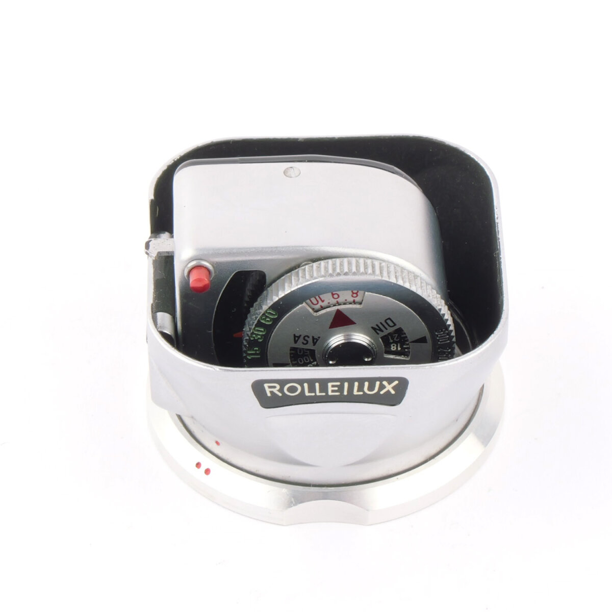 Die Rollei Rolleilux ist ein seltenes Kombinationszubehör, bestehend aus Gegenlichtblende und Belichtungsmesser, speziell entwickelt für 6x6 Rolleiflex TLR-Kameras. Sie verbindet elegantes Design mit praktischer Funktionalität und ist heute ein begehrtes Sammlerstück.